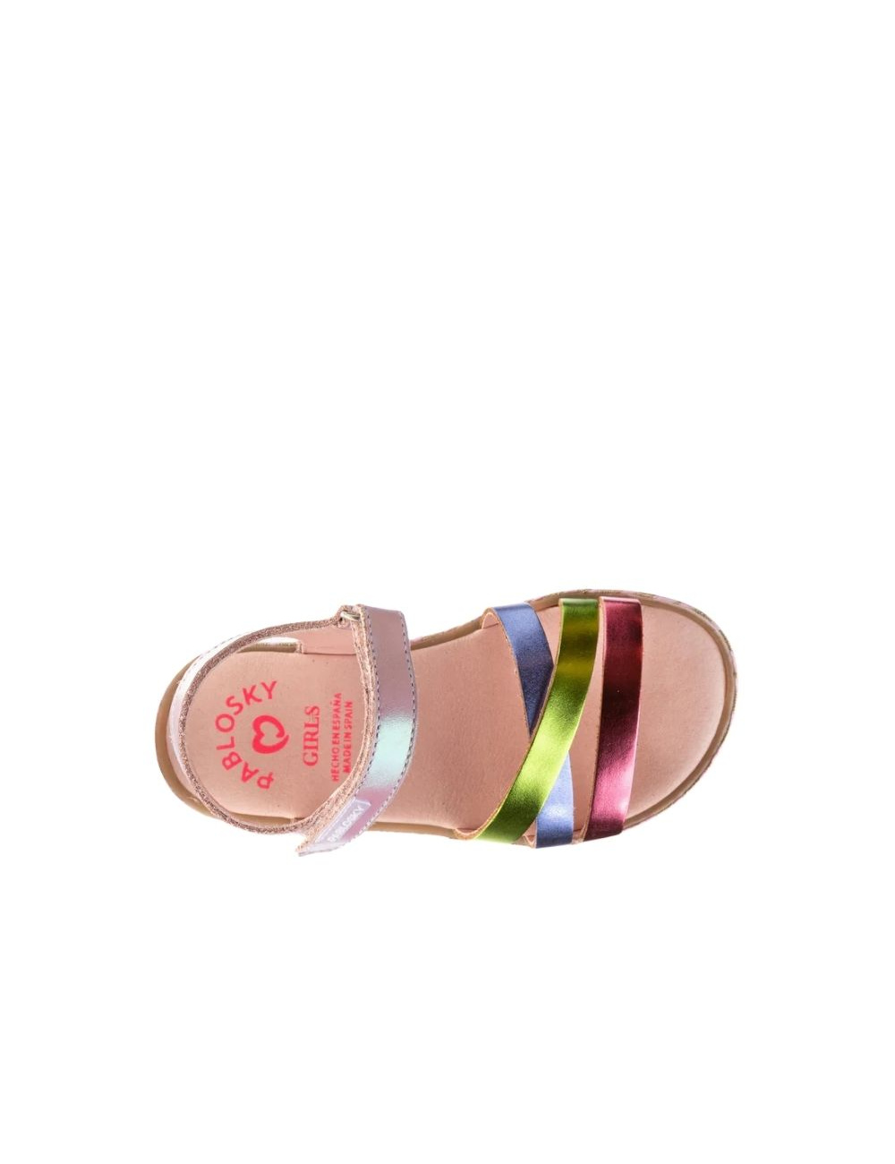 Sandalia Pablosky niña con tiras metálicas, cierre de velcro y suela antideslizante. Compra en Calzados Primor online o en tienda física.