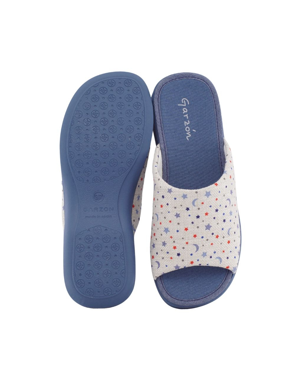 Zapatillas de casa Garzón con estrellas y suela de goma. Comodidad y diseño en Calzados Primor. ¡Compra online o en tienda con envío rápido!