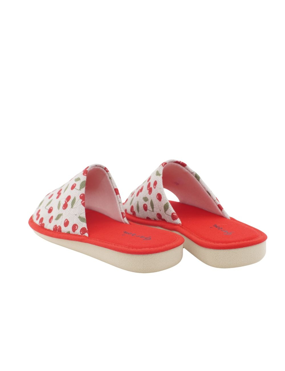 Zapatillas Garzón de casa con estampado de cerezas y suela especial para parquet. Comodidad, estilo y suavidad en cada paso.