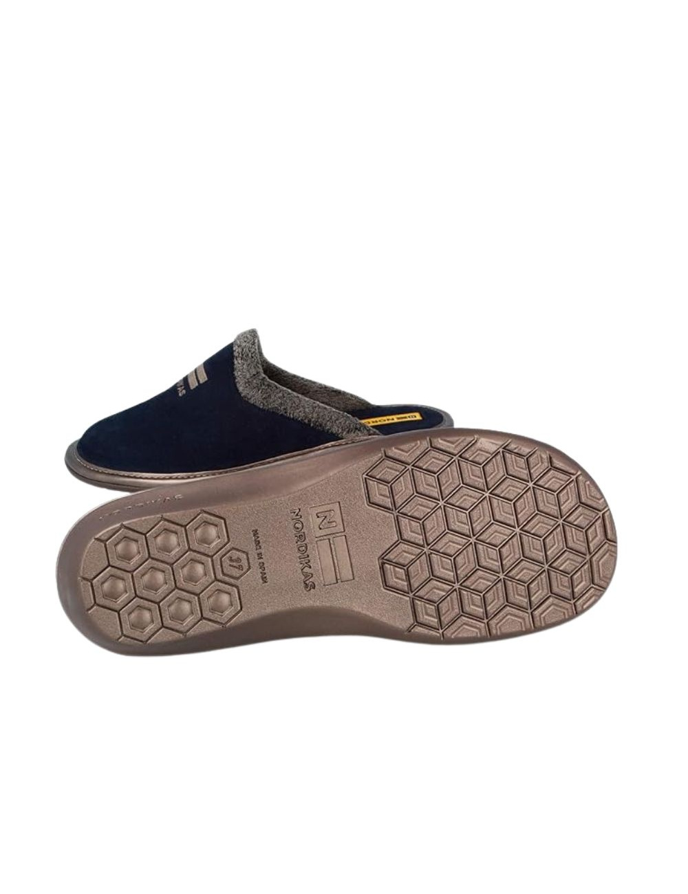 Zapatillas Nordikas 238 para mujer. Diseño destalonado en tejido afelpado, forro ártico cálido y suela antideslizante. Estilo y confort en color marino.
