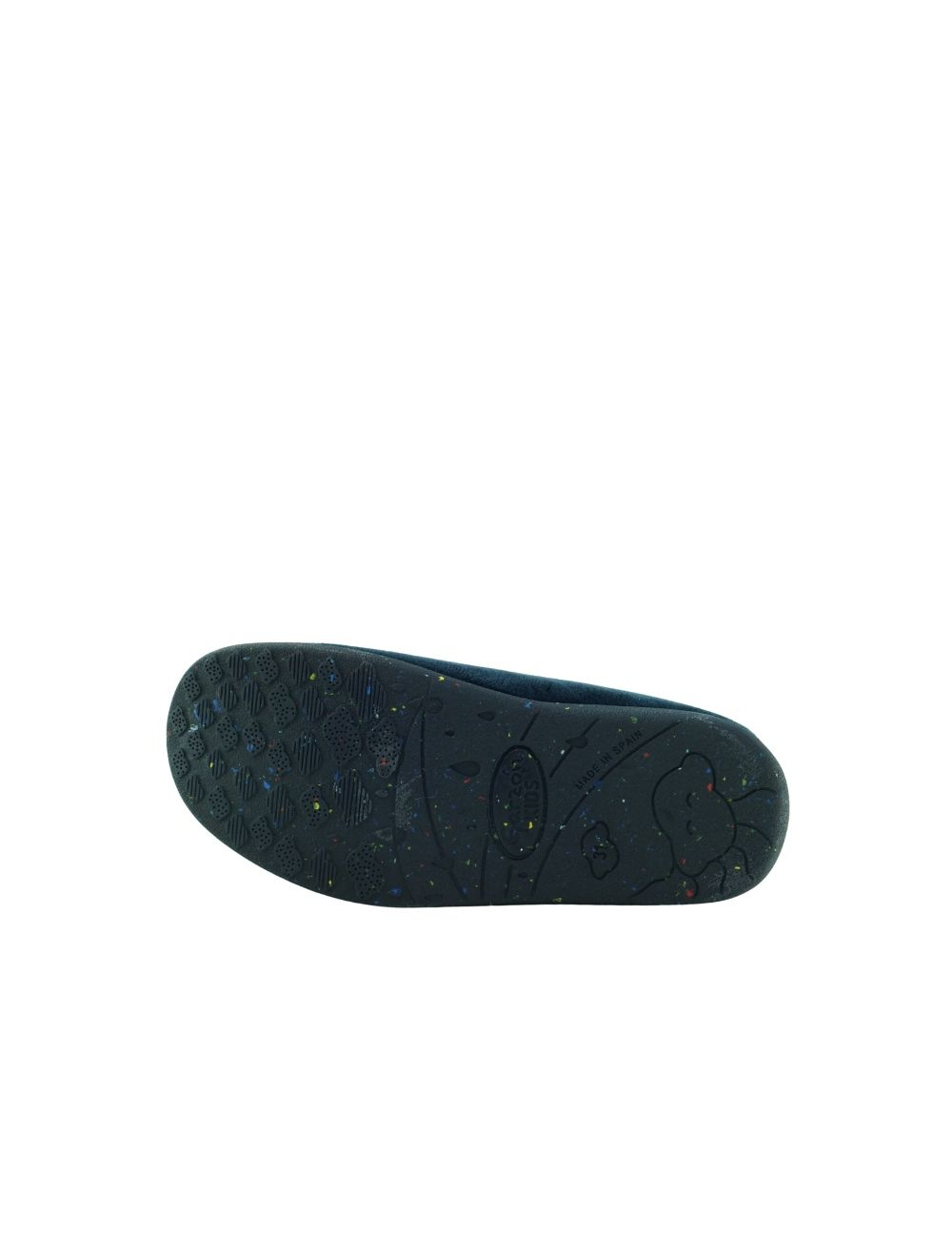 Está fabricada en tejido de suapel con aspecto de terciopelo en color azul marino. Suela de goma flexible y antideslizante perfectas para jugar y saltar en casa.