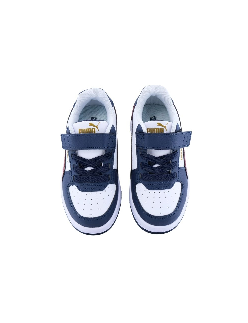 Descubre las zapatillas deportivas Puma Caven 2.0 AC+ 393839 para niño. Diseño clásico en blanco, azul marino y burdeos, parte superior de cuero sintético, cierre de velcro ajustable y suela de goma con excelente tracción. Comodidad y estilo en cada paso.