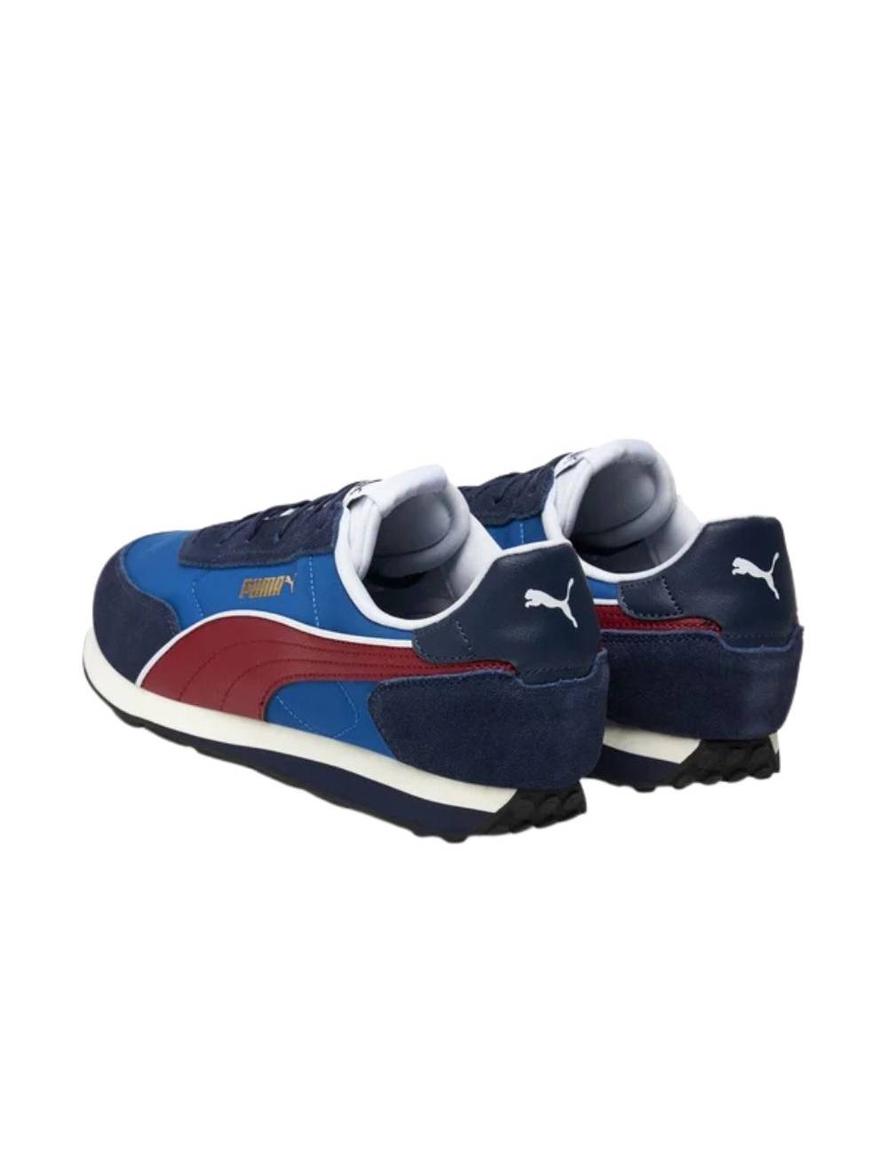 El diseño presenta una construcción en nylon resistente y gamuza suave, que aporta textura y estructura a cada paso. Su formstrip PUMA en material sintético destaca en los laterales en contraste con el resto de la capellada, disponible en combinaciones dinámicas como azul marino con rojo, negro con blanco, rojo con blanco y verde con azul, adaptándose a distintos gustos y estilos personales.