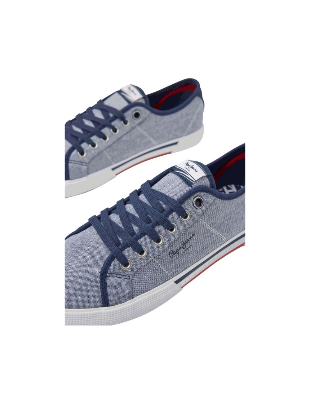 Zapatillas Pepe Jeans Brady Chambray PMS30817 para hombre, diseño minimalista en lona azul con suela vulcanizada. Perfectas para estilo casual y comodidad diaria.