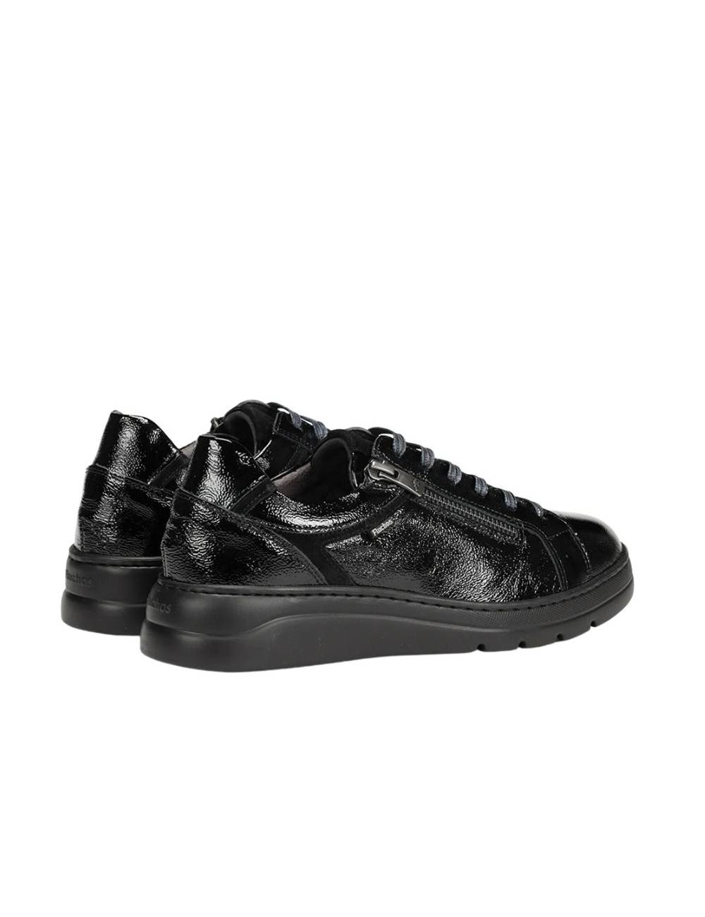 Zapato casual Fluchos F1666 de piel naplack charol negro, con cordones y cremallera lateral. Comodidad, elegancia y funcionalidad en un solo modelo.